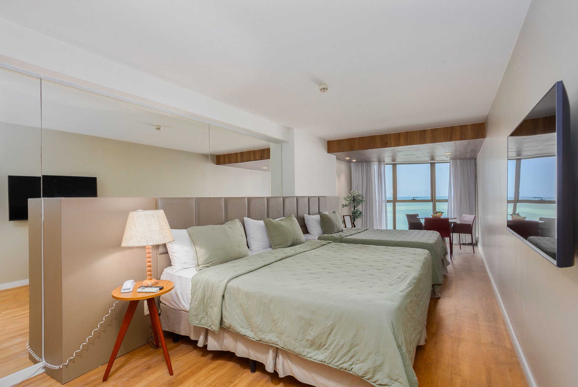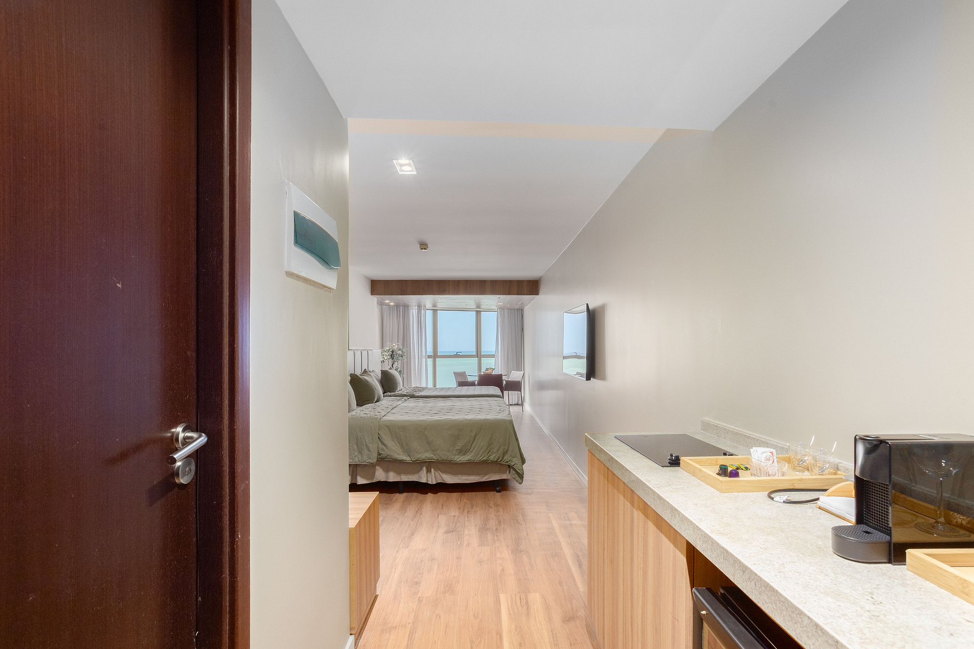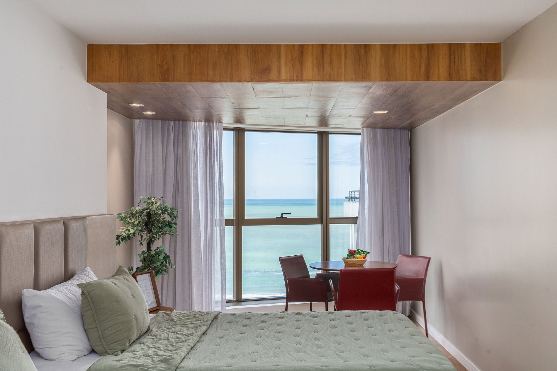 Suíte decorada por arquiteta, com vista deslumbrante da Praia de Boa Viagem, no 10º andar. Conta com cama king size, cama solteiro, Wi-Fi, TV smart, ar-condicionado, cooktop, iluminação aconchegante. Prédio com recepção 24h, restaurante, academia, sauna e estacionamento gratuito. Localização privilegiada, perto dos melhores bares, restaurantes e do Shopping RioMar. Perfeito para lazer ou trabalho.