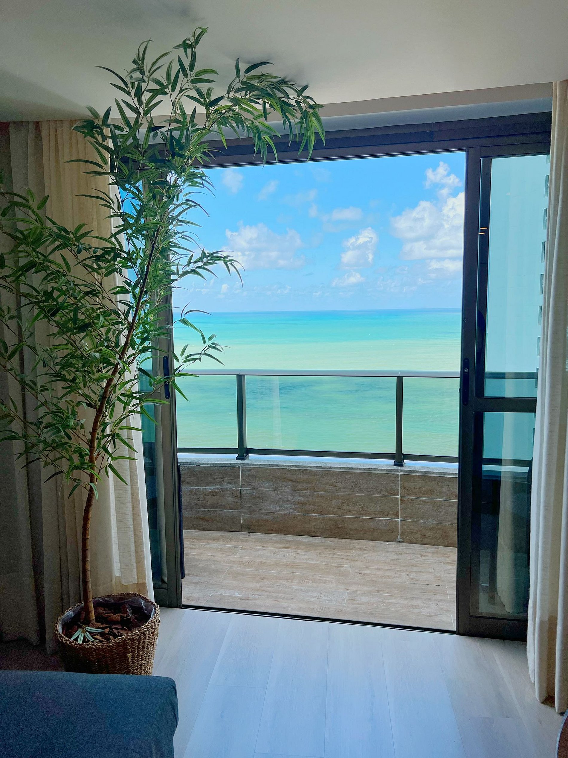 Apartamento com varanda e vista panorâmica do mar, decorado por arquiteta, com cama king size, sofá cama, TV Smart, frigobar, micro-ondas, Split, cofre eletrônico, sistema de iluminação diferenciado e cortinas blackout. O prédio oferece recepção bilíngue 24h, academia, sauna, restaurante. Localizado na praia de Boa Viagem, perto de shoppings, restaurantes e a 15 minutos do Aeroporto Internacional de Recife. Wi-Fi gratuito.