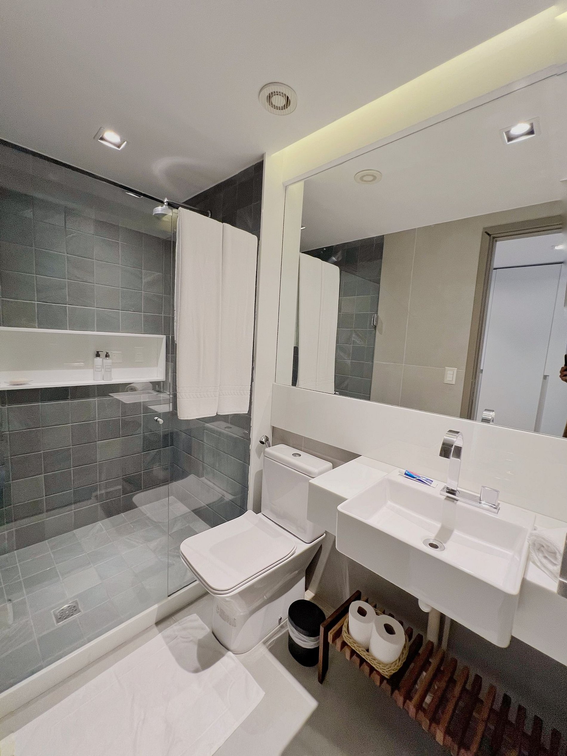 Capacidade: até 04 hóspedes. Apartamento 100% não-fumante. Não aceitamos animais de estimação. Horário de check in: a partir das 14 h. Check out: até às 12 horas. Early check in e late check out são possíveis, a depender de disponibilidade. Podem ser cobradas taxas adicionais. Dispomos no prédio de maleiro, onde suas malas podem ser guardadas com segurança. O café da manhã é opcional e, se houver interesse, deve ser pago diretamente ao restaurante. Horário do café da manhã: das 06 às 10 horas da manhã. Também pode ser pedido no apartamento. Temos cardápio no quarto. A nossa recepção é bilingue e funciona 24 horas. Para o check in, basta o hóspede se apresentar na recepção, munido de documento oficial com foto. Crianças são bem-vindas. Para o check in, elas devem estar acompanhadas dos pais ou, na falta destes, por seu tutor ou representante legal, conforme legislação federal. As chaves do apartamento são cartões magnéticos preparados na recepção. Wi fi e estacionamento são gratuitos. A senha do wi fi será entregue pela recepção, no check in. TV a cabo gratuita.