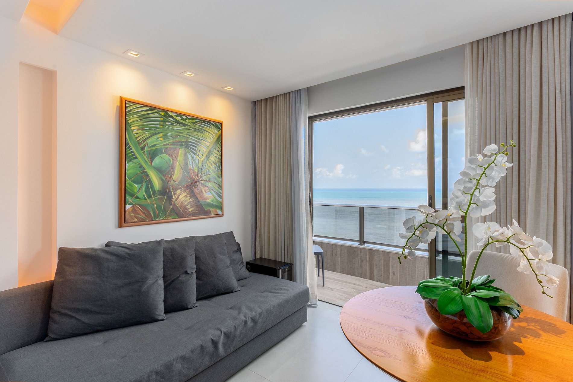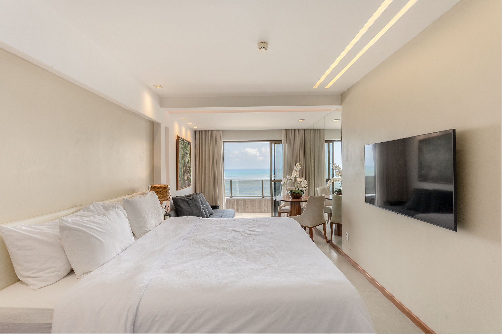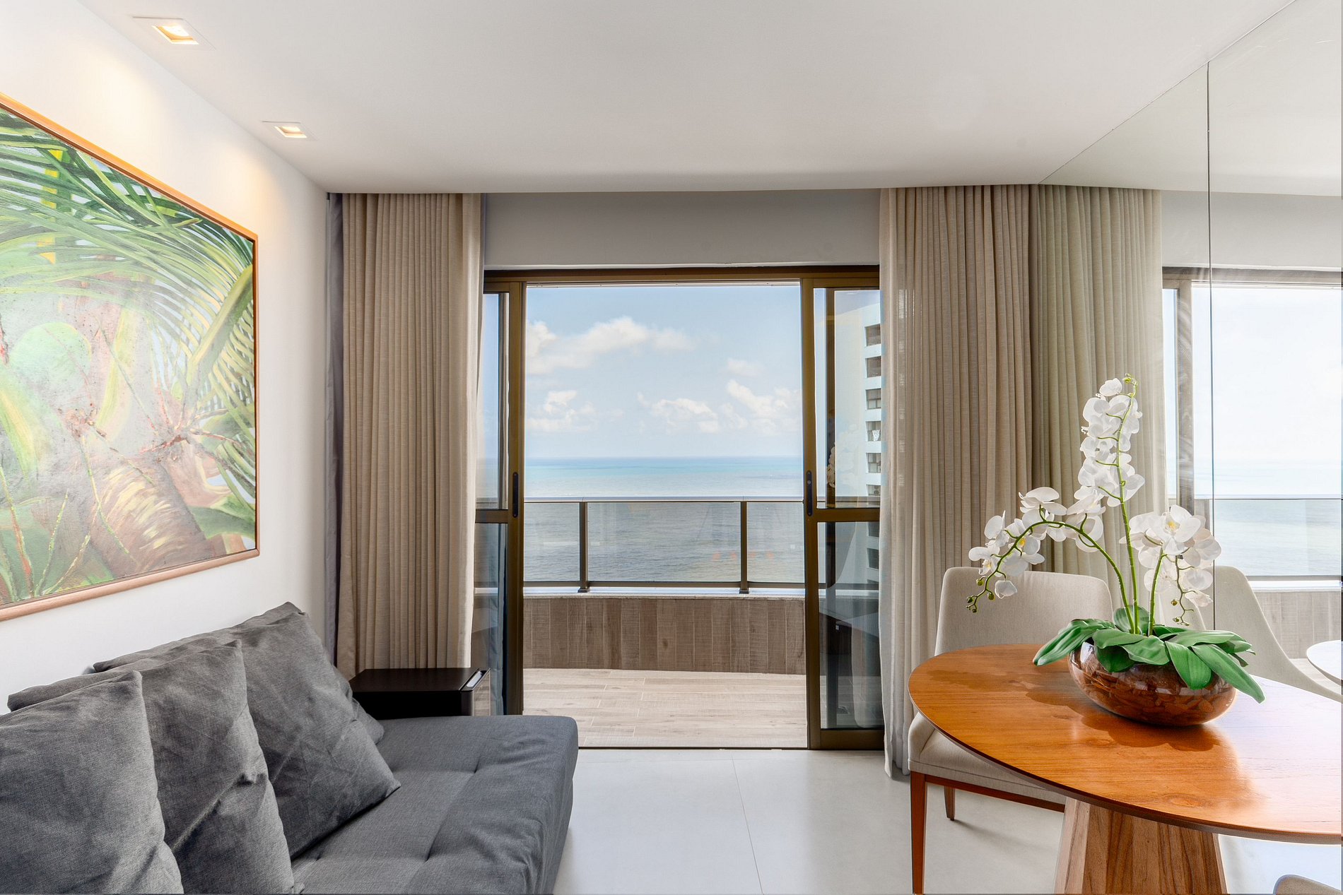 Apartamento com varanda e vista panorâmica do mar, decorado por arquiteta, com cama king size, sofá cama casal, TV Smart, frigobar, micro-ondas, Split, cofre eletrônico, sistema de iluminação diferenciado e cortinas blackout. O prédio oferece recepção bilíngue 24h, academia, sauna, restaurante, estacionamento com manobrista e outros serviços. Localizado na praia de Boa Viagem, perto de shoppings, restaurantes e a 15 minutos do Aeroporto Internacional de Recife. Wi-Fi gratuito.