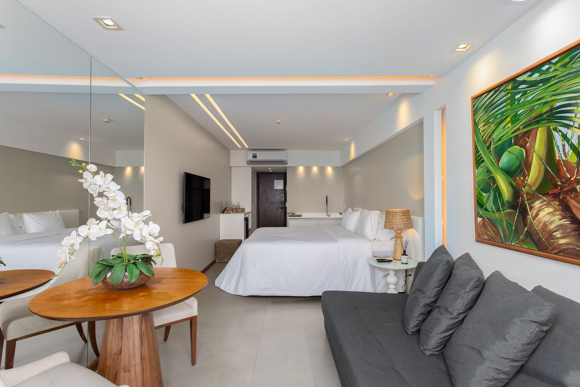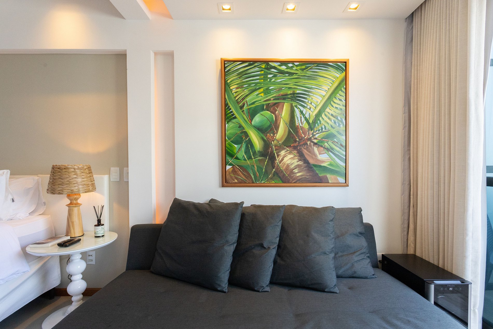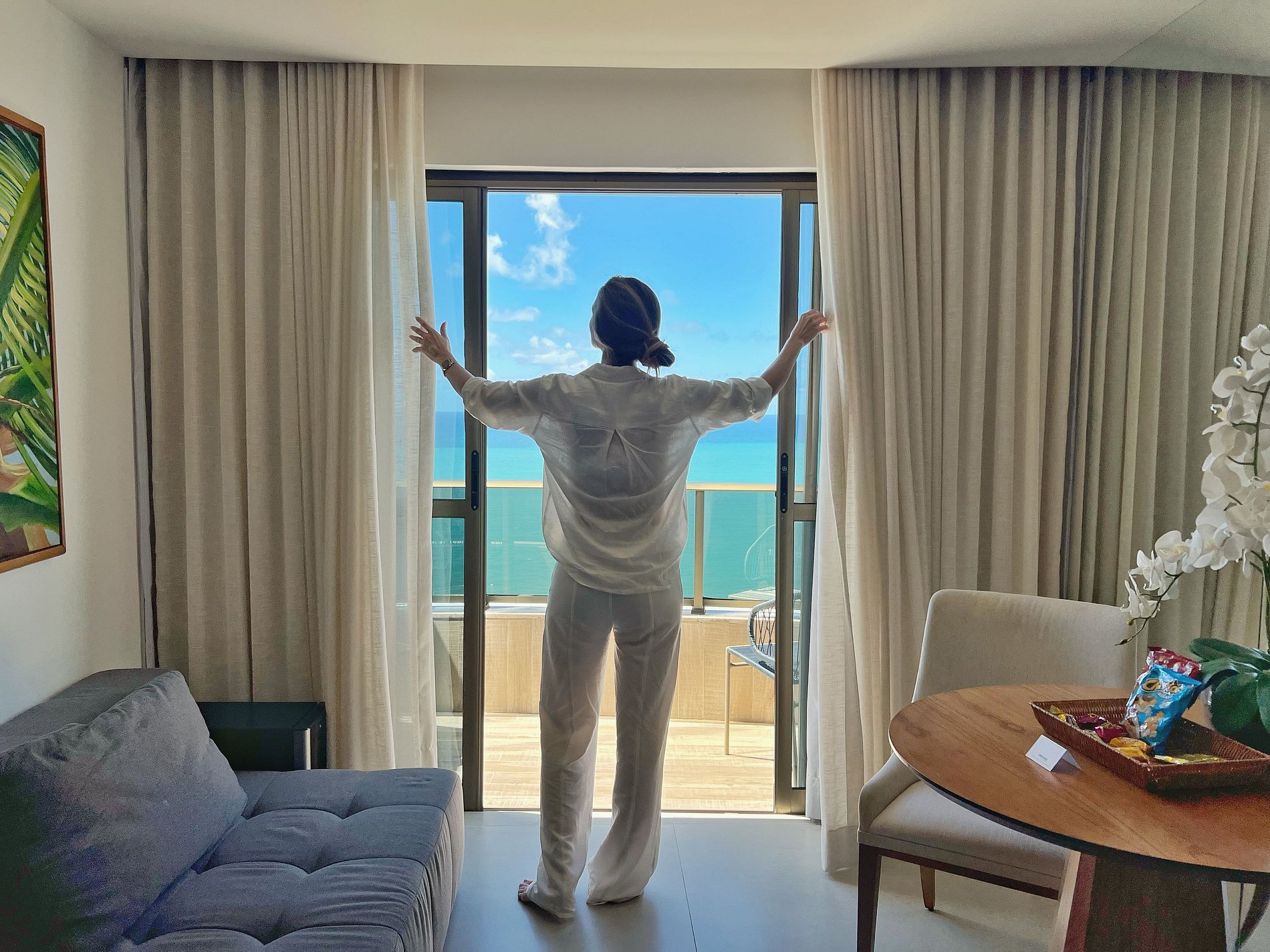 Apartamento com varanda e vista panorâmica do mar, decorado por arquiteta, com cama king size, sofá cama casal, TV Smart, frigobar, micro-ondas, Split, cofre eletrônico, sistema de iluminação diferenciado e cortinas blackout. O prédio oferece recepção bilíngue 24h, academia, sauna, restaurante, estacionamento com manobrista e outros serviços. Localizado na praia de Boa Viagem, perto de shoppings, restaurantes e a 15 minutos do Aeroporto Internacional de Recife. Wi-Fi gratuito.