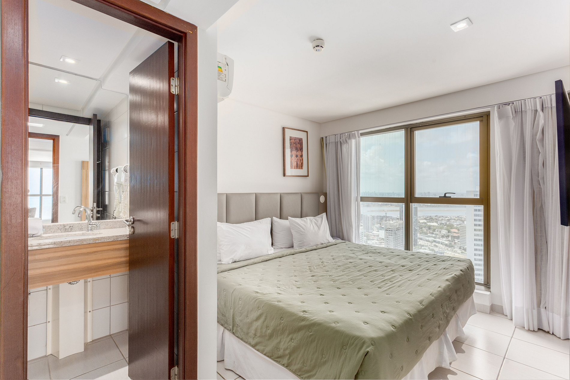Cobertura premium no 32° andar, com 68m² e vista panorâmica para o mar e para a cidade. Decorado por arquiteta, dispõe de cama king size, sofá-cama, TV Smart, Wi-Fi gratuito, cozinha compacta com frigobar, micro-ondas, cooktop, balcão com pia e Split. O prédio oferece recepção bilíngue 24h, academia, sauna, restaurante e estacionamento com manobrista. Localizada na Praia de Boa Viagem, perto de shoppings, restaurantes e bares, ideal para lazer ou trabalho, com ambiente relaxante e aconchegante.