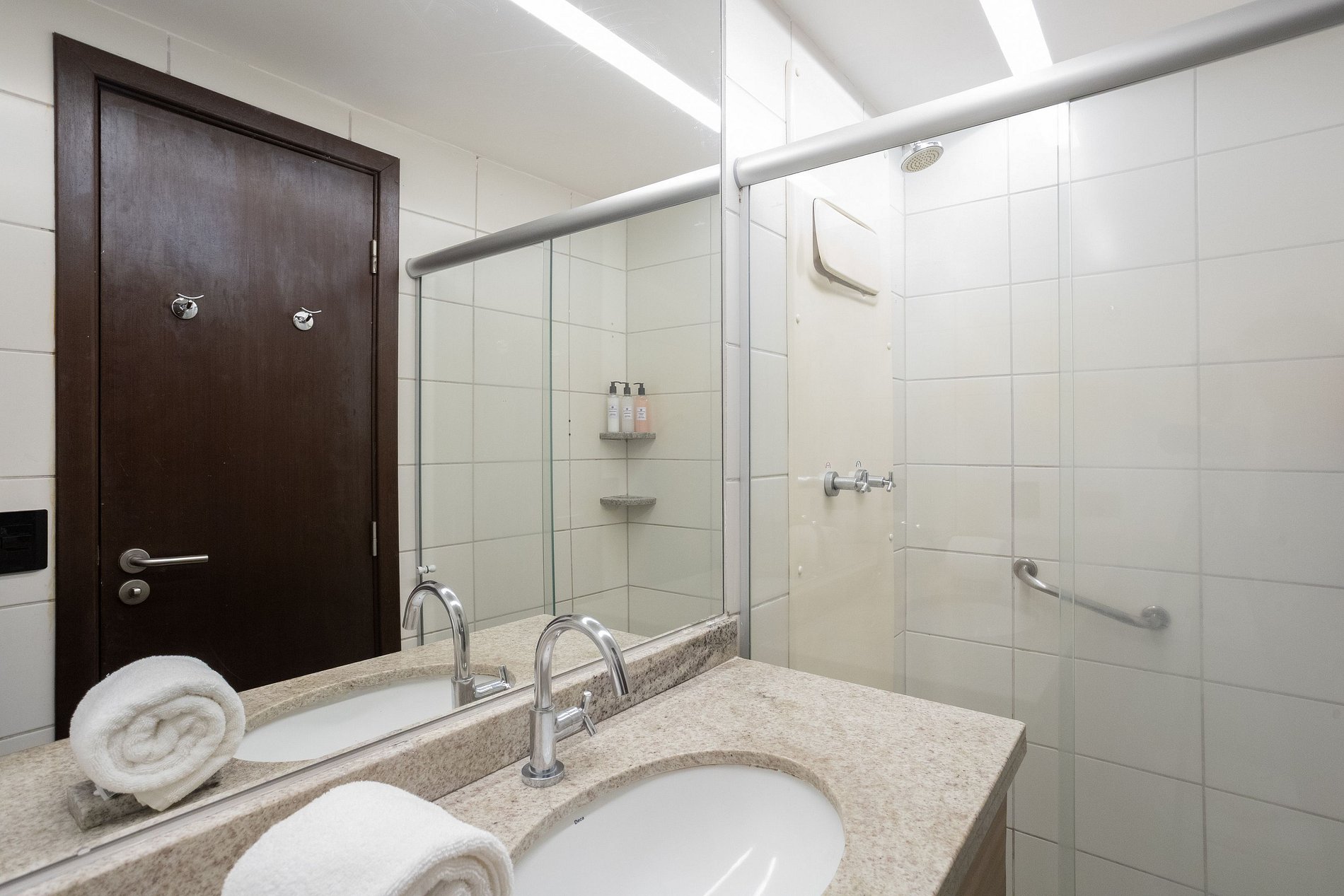 O nosso prédio dispõe de recepção bilíngue 24h, academia, sauna, restaurante das 06:30 as 22:30h.