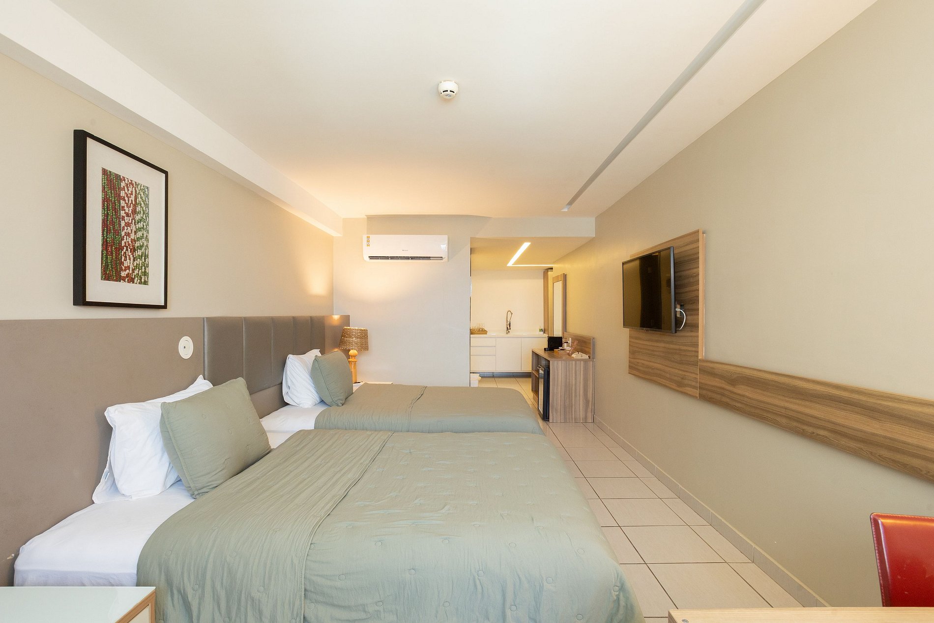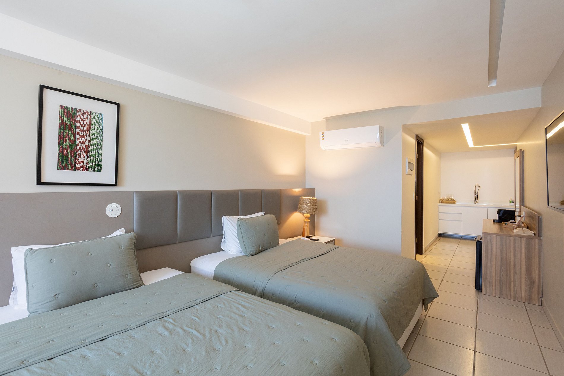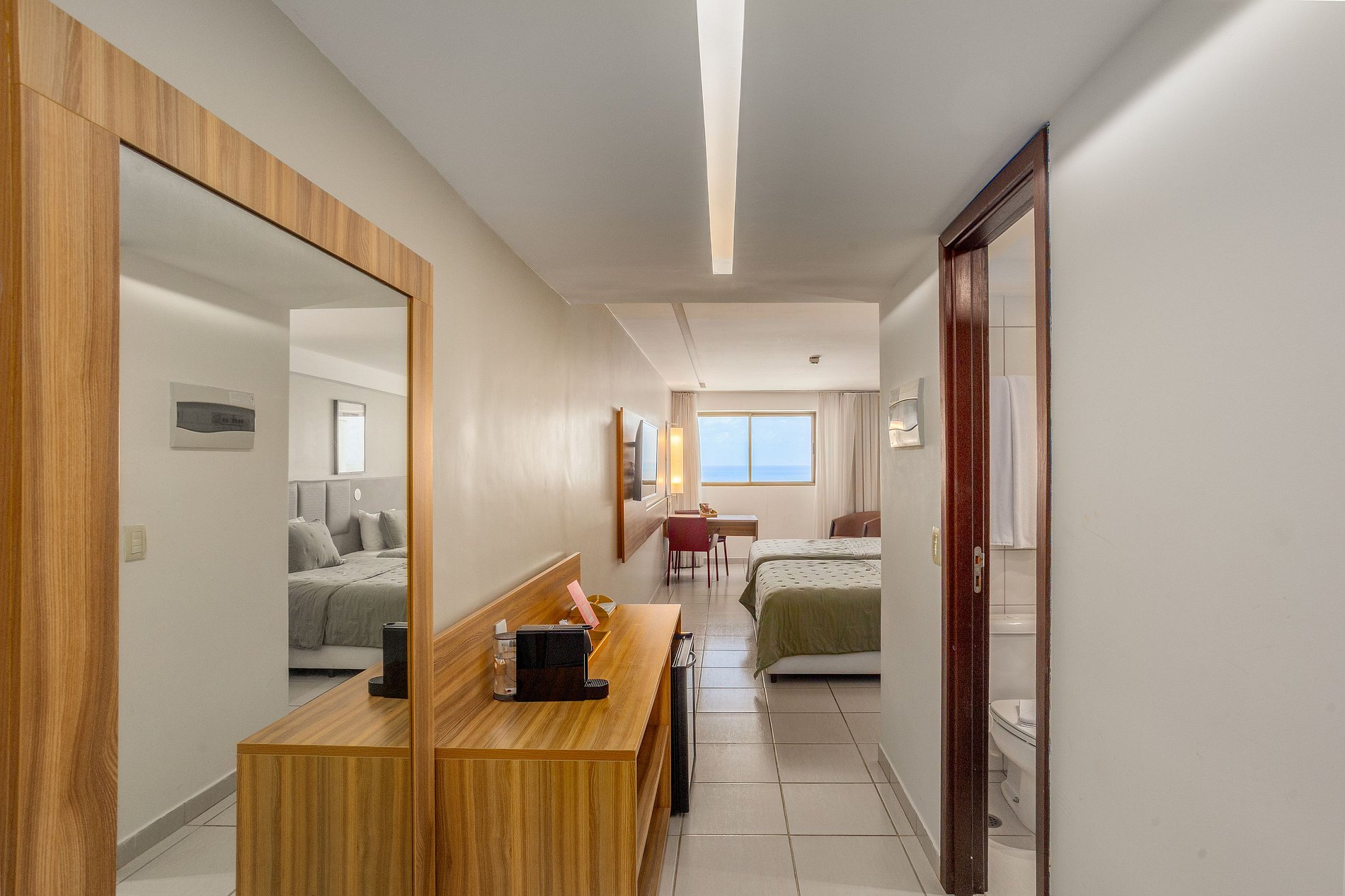 Suíte standard, com vista deslumbrante da Praia de Boa Viagem. Conta com duas camas de casal, Wi-Fi, Smart TV, ar-condicionado, iluminação aconchegante. Prédio com recepção 24h, restaurante, academia, sauna e estacionamento gratuito. Localização privilegiada, perto dos melhores bares, restaurantes e do Shopping RioMar. Perfeito para lazer ou trabalho.