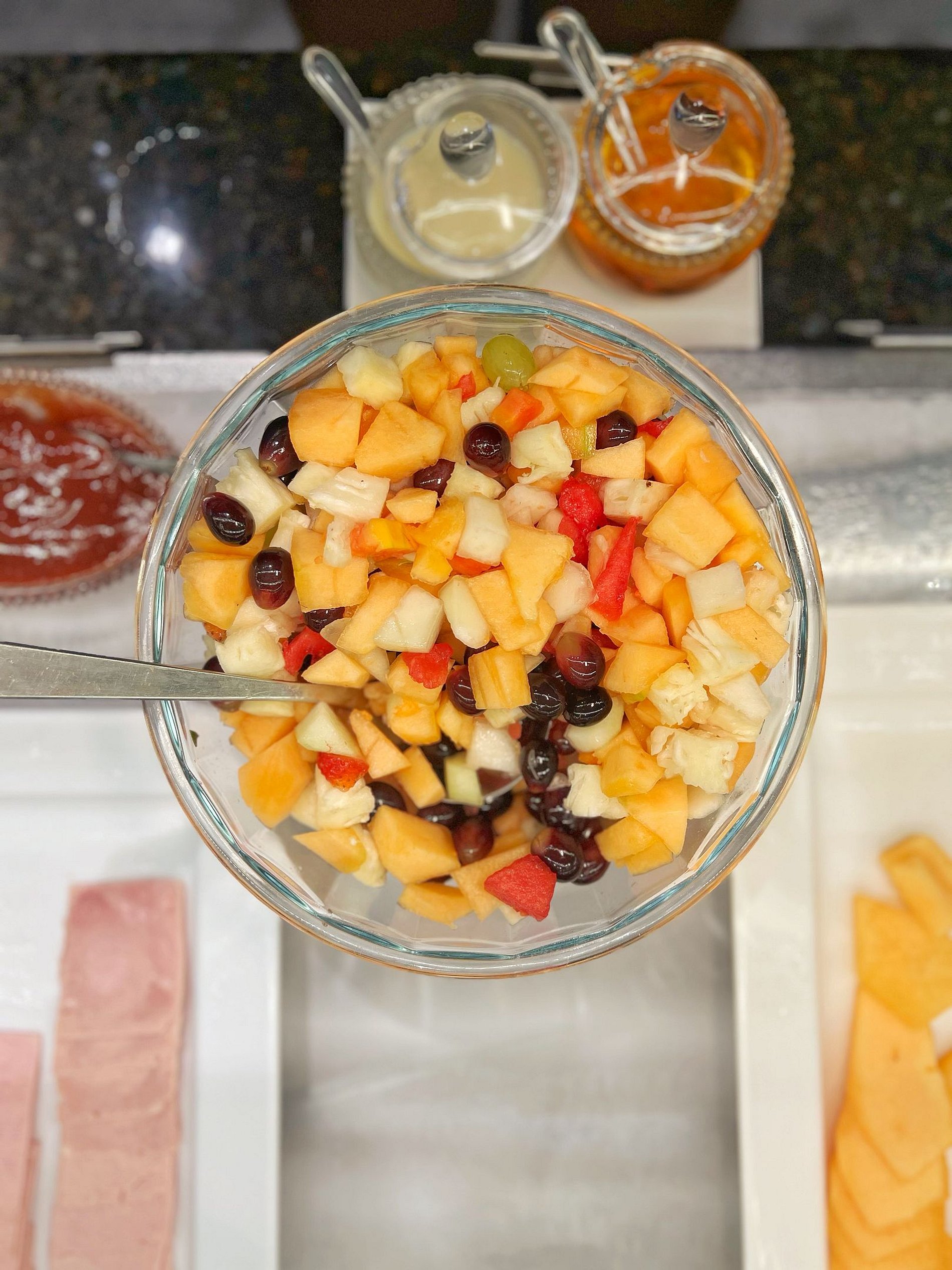 Na rua de trás: frutaria com conveniência, padaria, supermercado e restaurantes