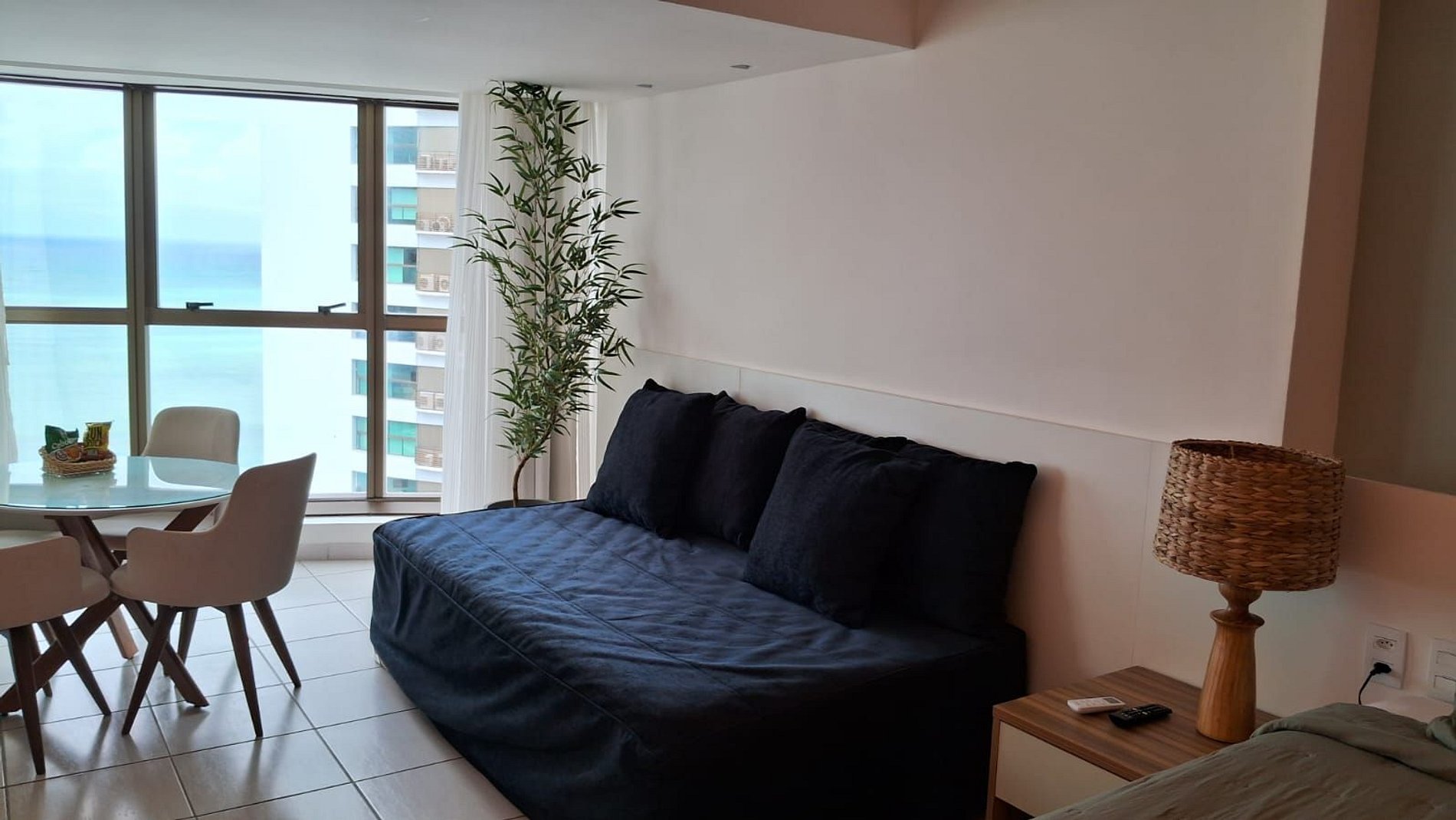 Suíte com vista deslumbrante da Praia de Boa Viagem, no 16º andar. Conta com cama king, sofá-cama, Wi-Fi, Smart TV, ar-condicionado e iluminação aconchegante. Prédio com recepção 24h, restaurante, academia, sauna e estacionamento gratuito. Localização privilegiada, perto dos melhores bares, restaurantes e do Shopping RioMar. Perfeito para lazer ou trabalho.